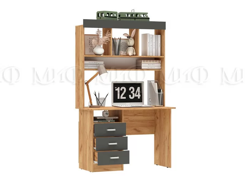 Стол письменный Мартина ЛДСП с надстройкой Графит, Дуб крафт