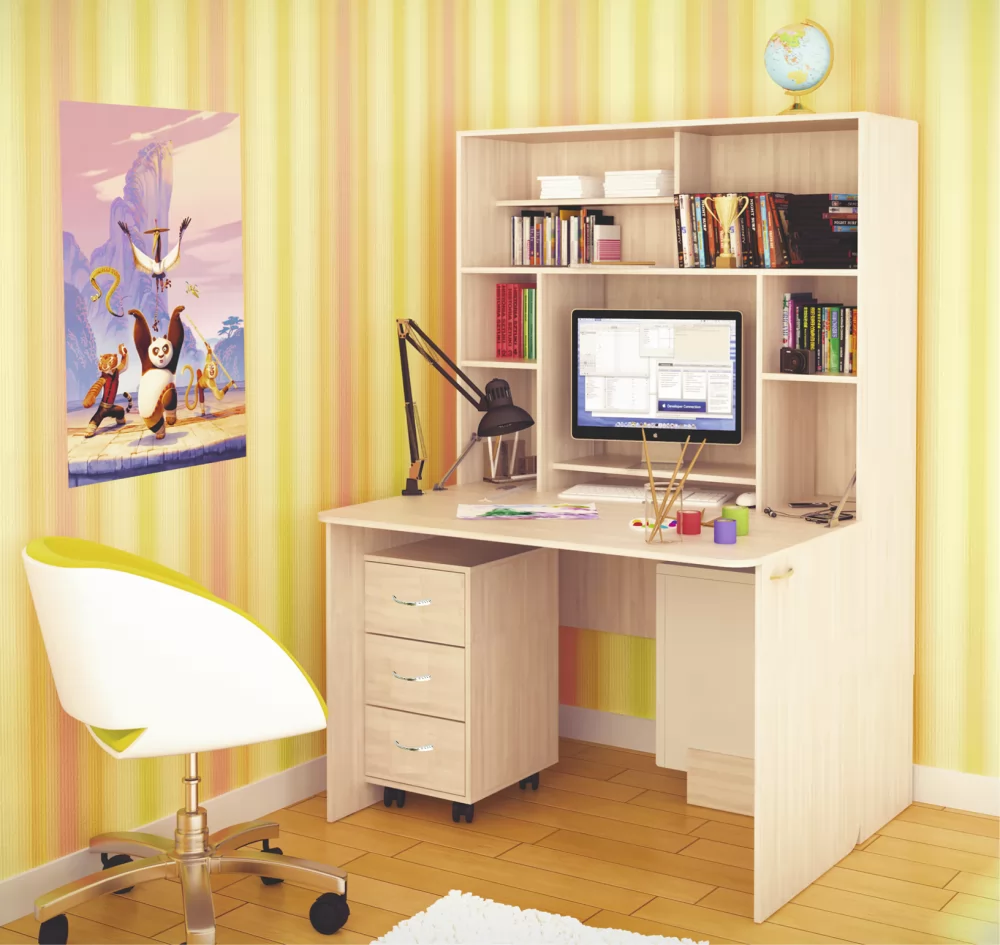 1. Столешница на секретерных петлях и барных кронштейнах, благодаря чему стол можно сложить, например, на период каникул.