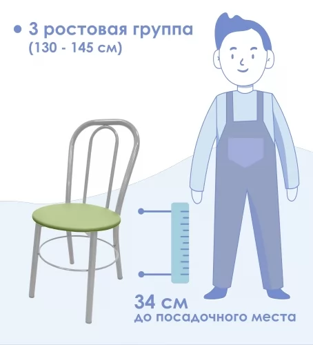 Стулья на металлокаркасе успешно используются не только для взрослых, но и для детей. Например, Венский детский мы можем изготовить для всех ростовых групп. Такой вариант без углов и выступов отлично подходит для использования в детских школьных и дошкольных учреждениях. Плавные и закругленные линии особенно актуальны для детей и подростков.