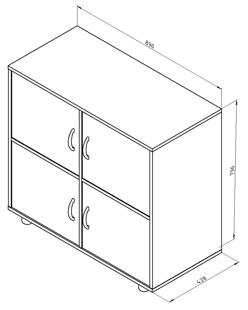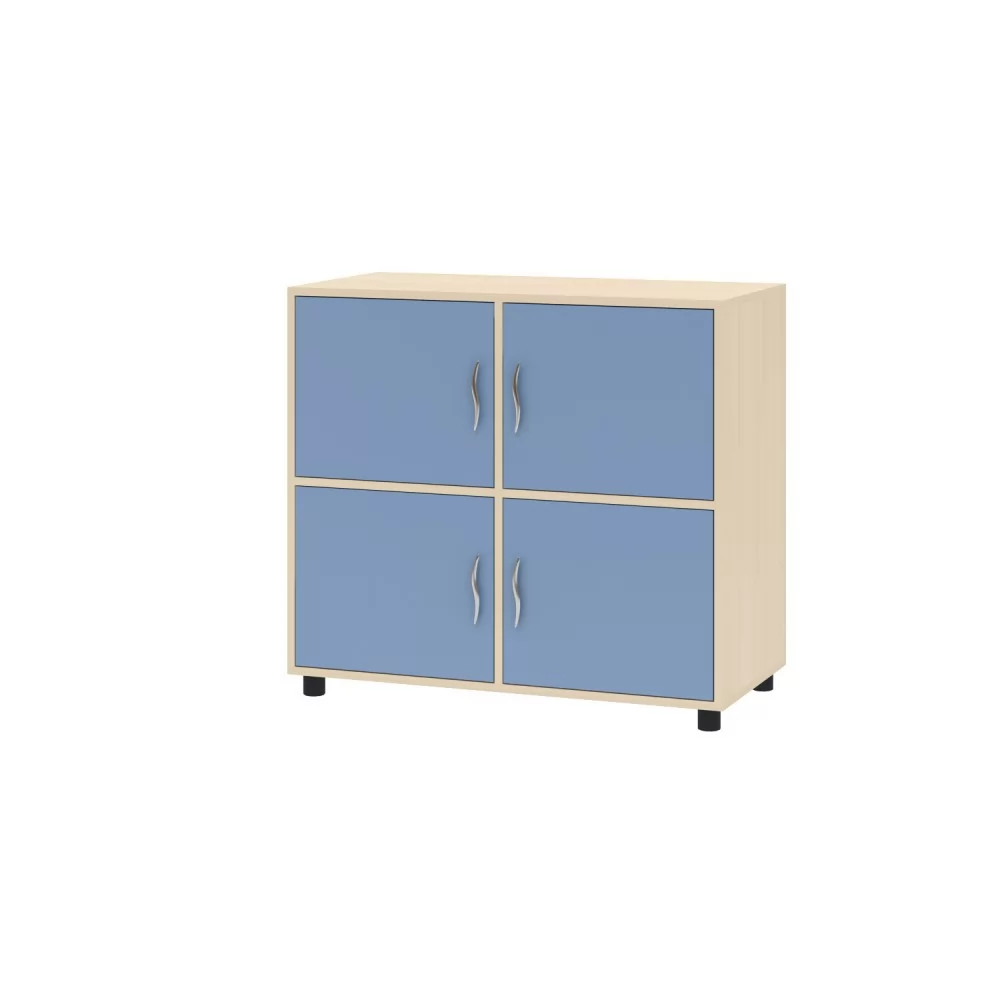Тумба четырехдверная удобная и вместительная. Этот предмет мебели включает в себя 4 закрытых ниши за распашными дверями, на которых удобно хранить личные вещи. Тумба установлена на регулируемых опорах.