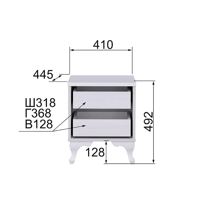 Изящная прикроватная тумба "Розалия" оборудована 2 ящиками.