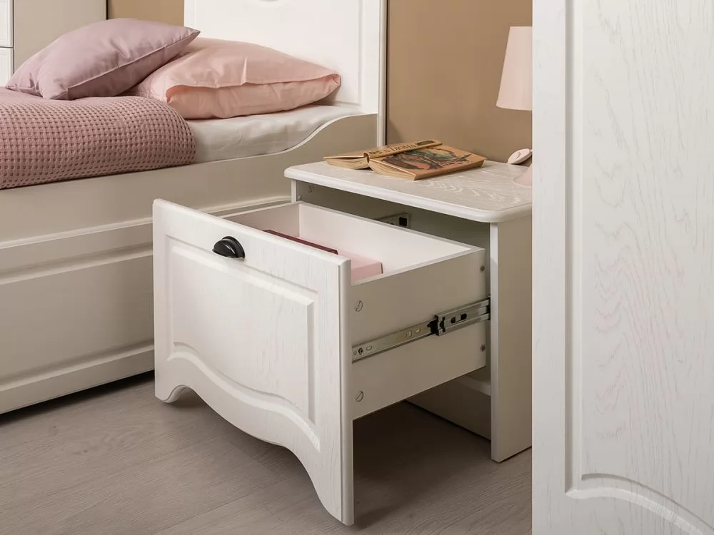 Тумба Роуз 13.235 будет отличным дополнением интерьера уютной детской. Изделие оснащено вместительным выдвижным ящиком, который пригодится для размещения всех необходимых вещей около кровати.