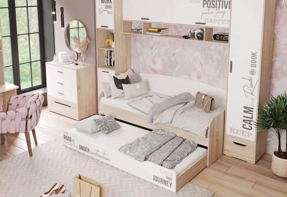 Кровать-софа Джуниор, выдвижная, дуб сонома/ дуб сонома, белый
