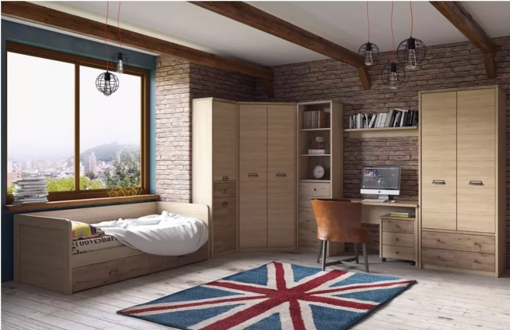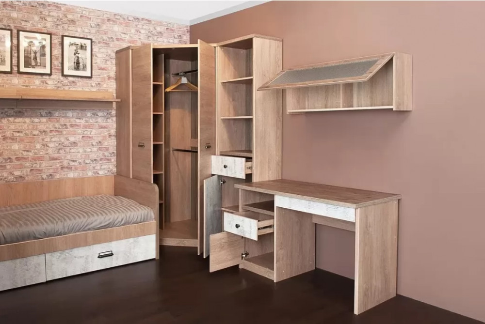 Набор детской мебели «Лео» №2 Гикори джексон/Белый матовый/Дымчатый зеленый