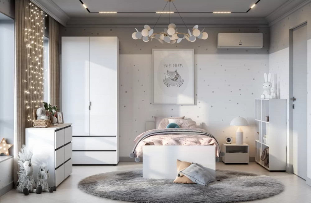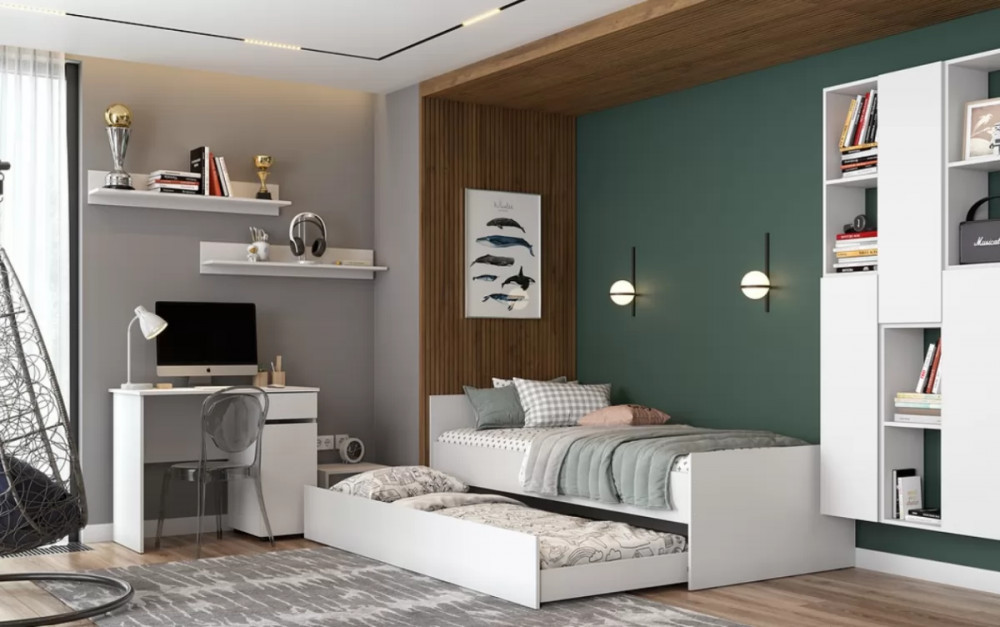 Набор детской мебели «Порто» №3 Белый Жемчуг, Яблоня Беллуно, Белый софт