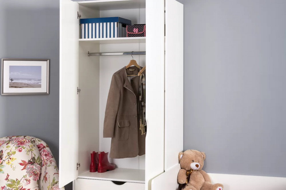 Ваш подрастающий малыш несомненно оценит изящный дизайн кроватки, а удобный съемный бортик придаст уверенность ответственным родителям в безопасности детского сна. Все элементы кровати предусмотрительно избавлены от острых углов и оформлены более толстой кромкой. Выкатные ящики - это вместительная система хранения для вещей и игрушек вашего ребенка. Удобный шкаф для одежды дополнен двумя выдвижными ящиками, что значительно увеличивает функциональность изделия. Комод оснащён складным пеленальным столиком. На всех изделиях ручками служат вырезы в фасадах, все выдвижные ящики имеют внутренние перегородки для лучшей организации хранения.