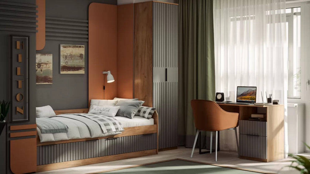 Набор детской мебели «Хилтон» стандартный Дуб Крафт золотой, Графит матовый
