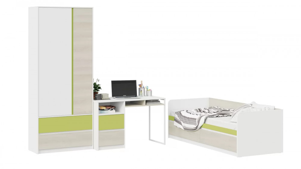 Набор детской мебели «Сканди» стандартный Дуб Гарден, Белая, Зеленый