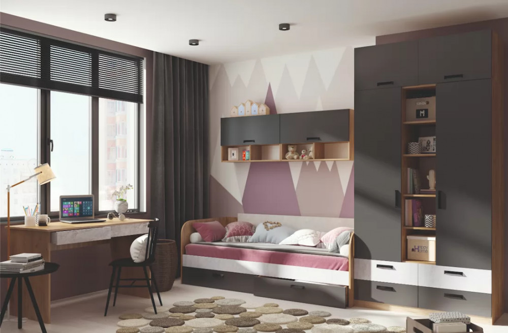 Цветовые решения: графит, дуб крафт золотой, цемент светлый