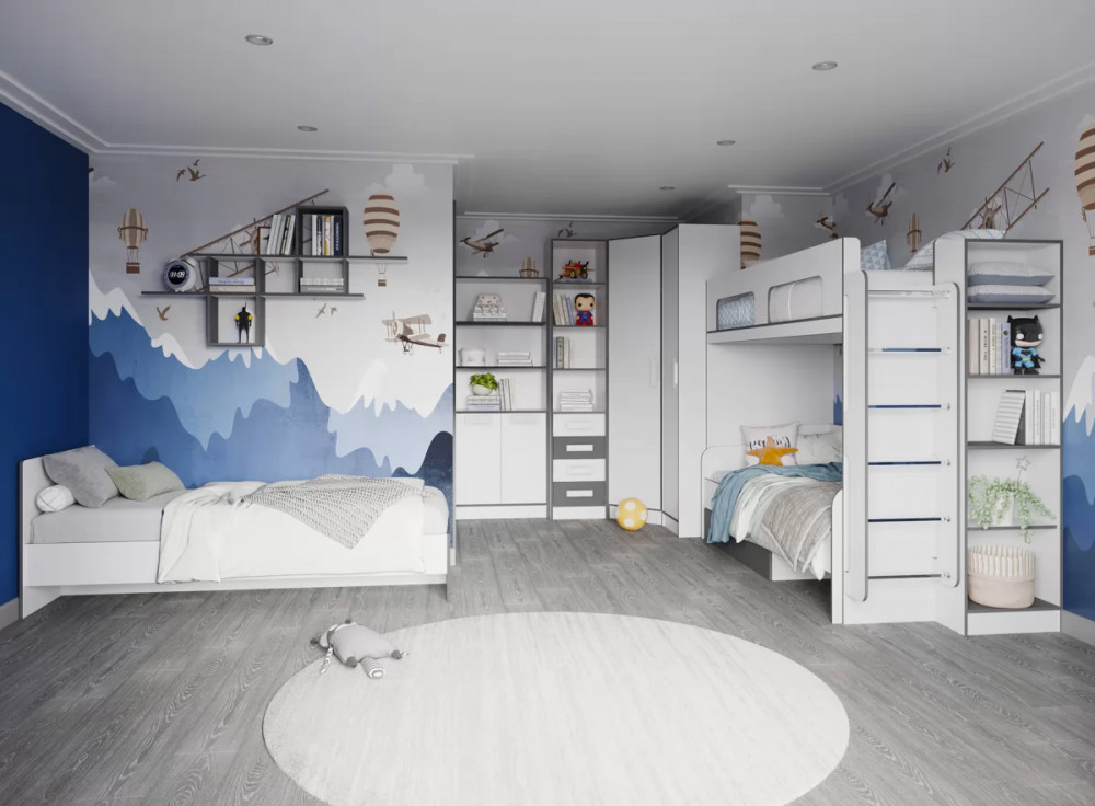 Набор детской мебели «Порто» №6 Белый Жемчуг, Яблоня Беллуно, Белый софт