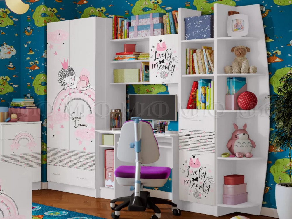 Набор детской мебели «Порто» №7 Белый Жемчуг, Яблоня Беллуно, Белый софт