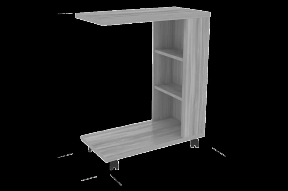 Состоит из: стола с 2-мя полками, на колесиках. Изделие симметричное.
