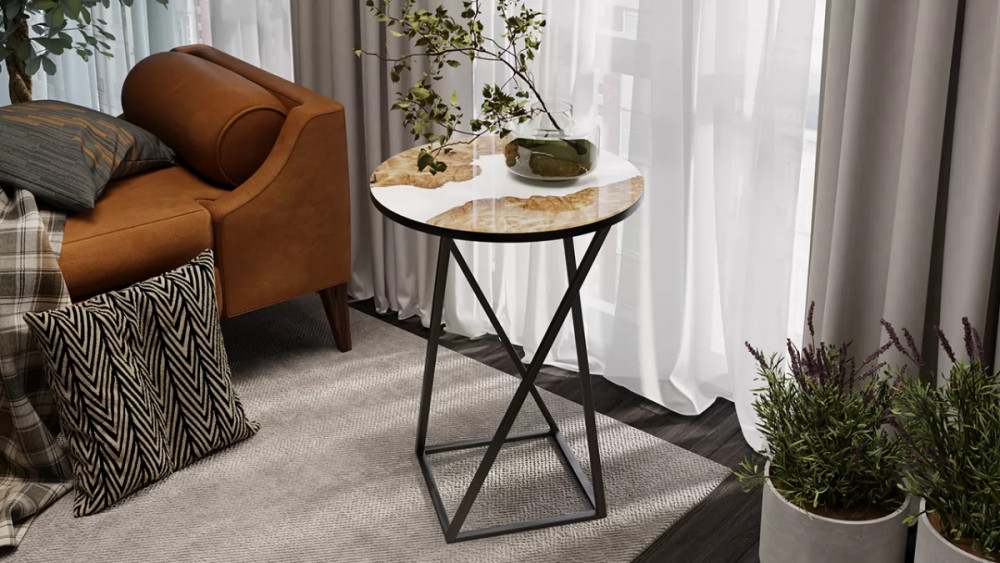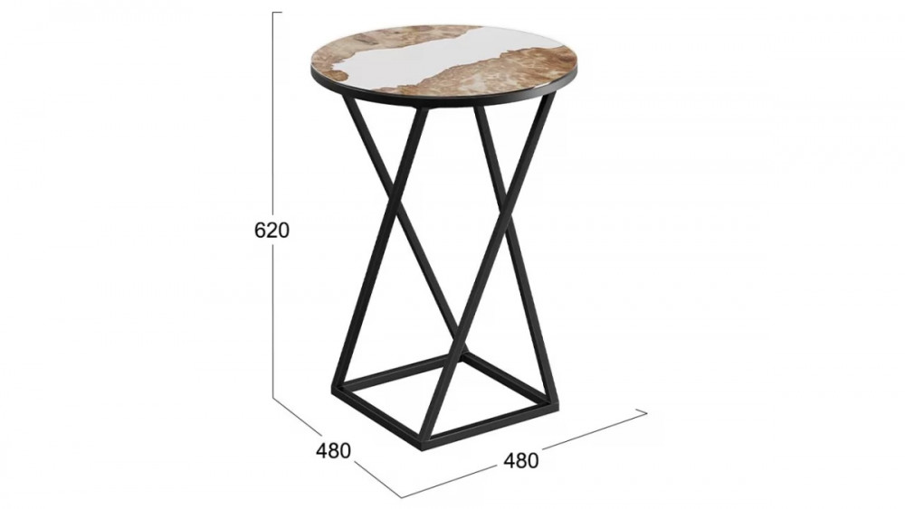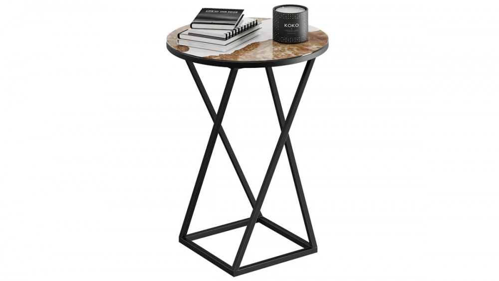 Стол журнальный ДП 1-03-05 исп. 2 Черный, Стекло с рисунком Слэб белый