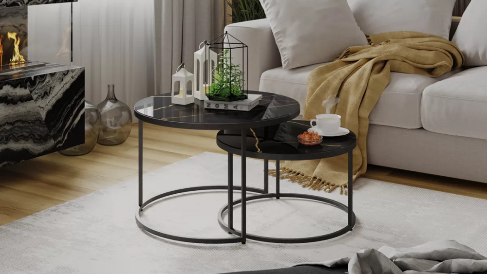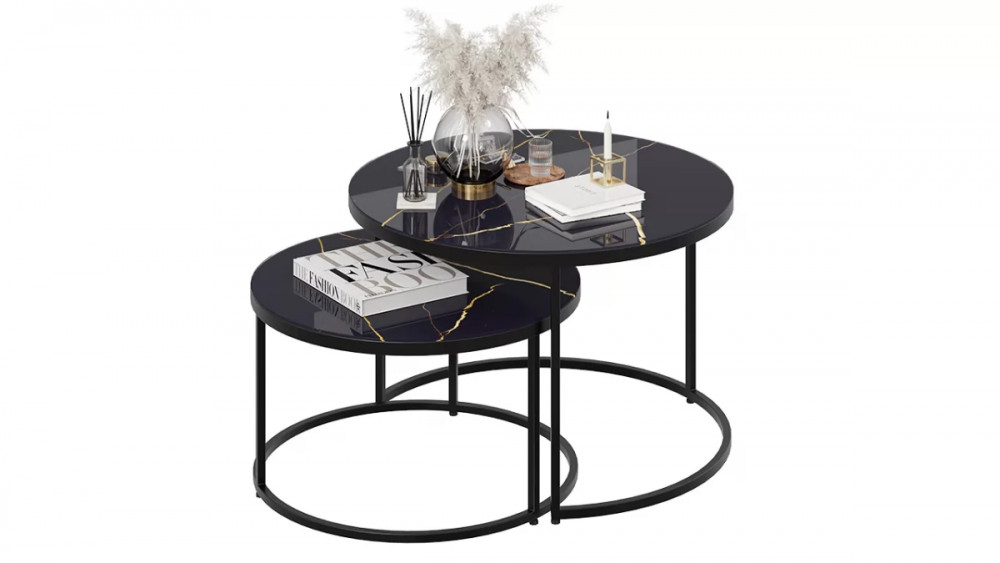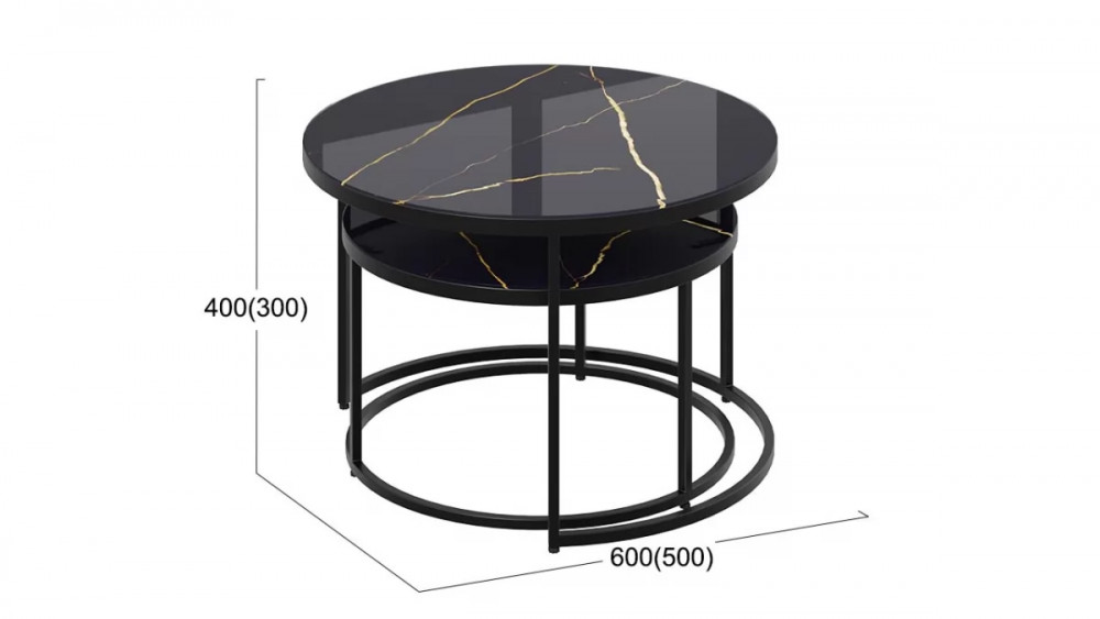 Дополнительная информация: Размеры меньшего столика (ШхГхВ): 500х500х300 мм.