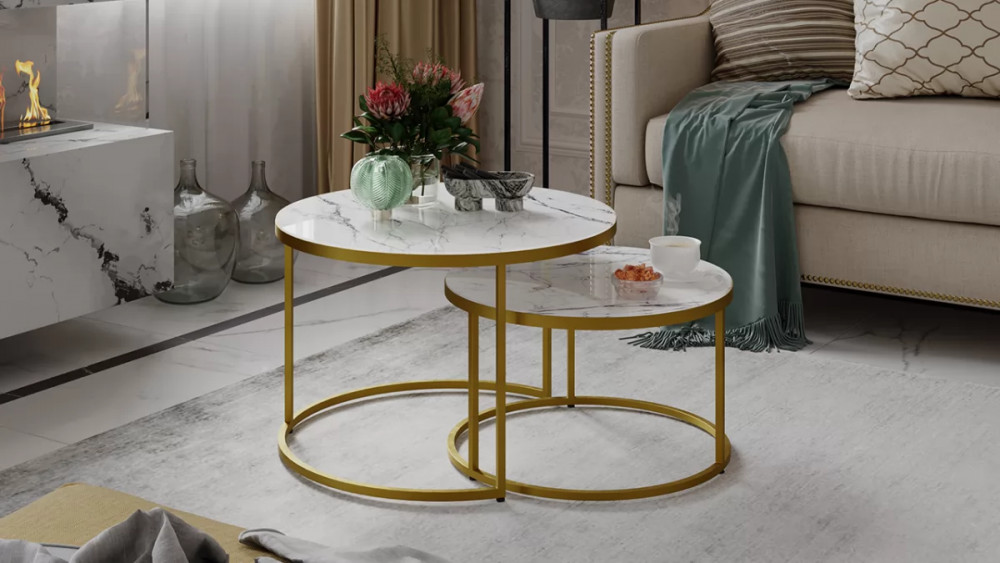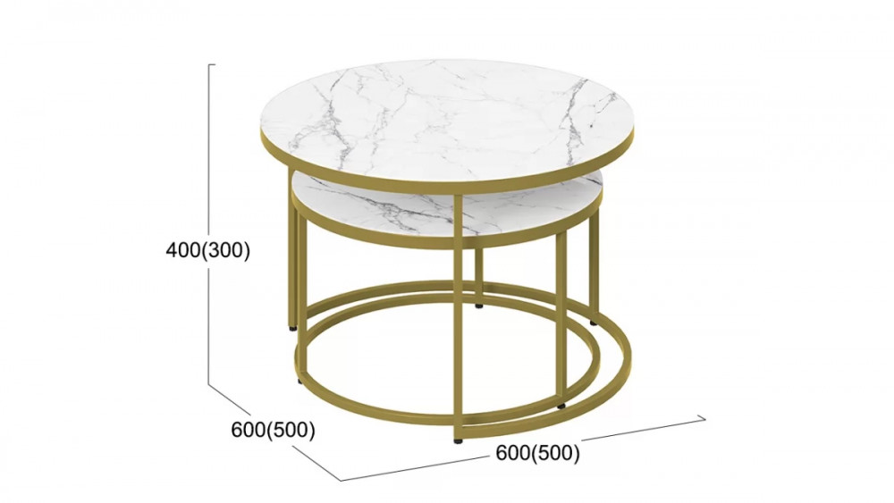 Дополнительная информация: Размеры меньшего столика (ШхГхВ): 500х500х300 мм.