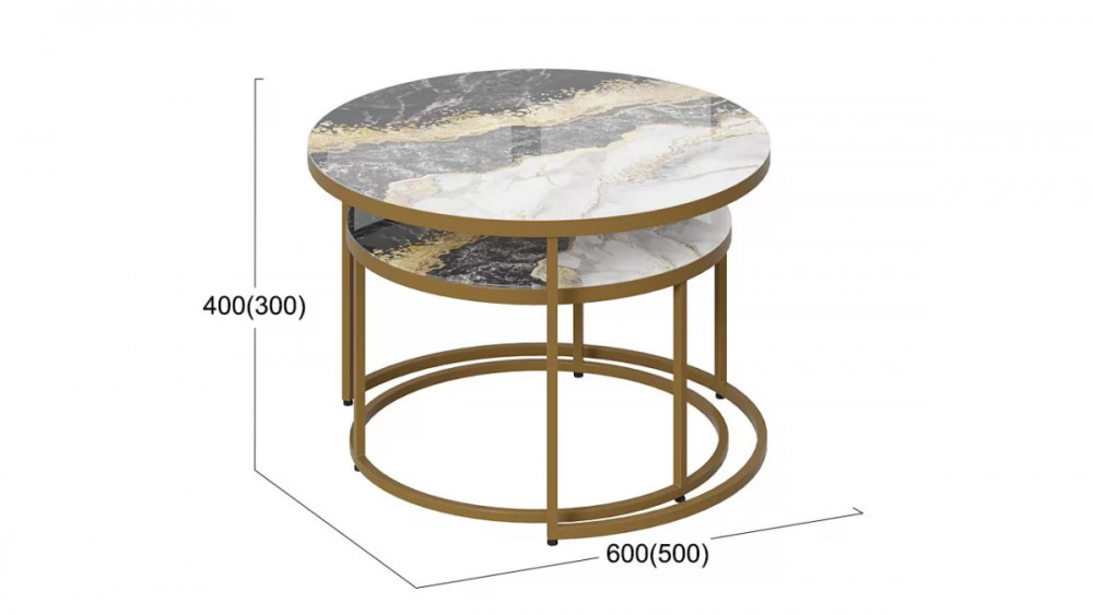 Дополнительная информация: Размеры меньшего столика (ШхГхВ): 500х500х300 мм.