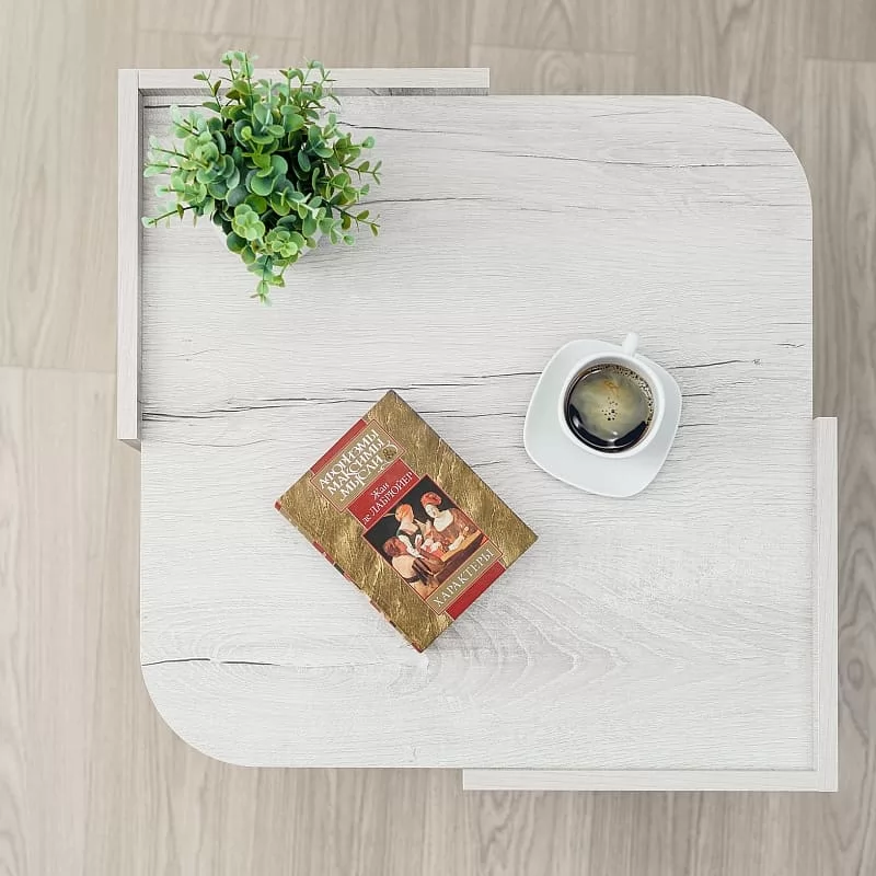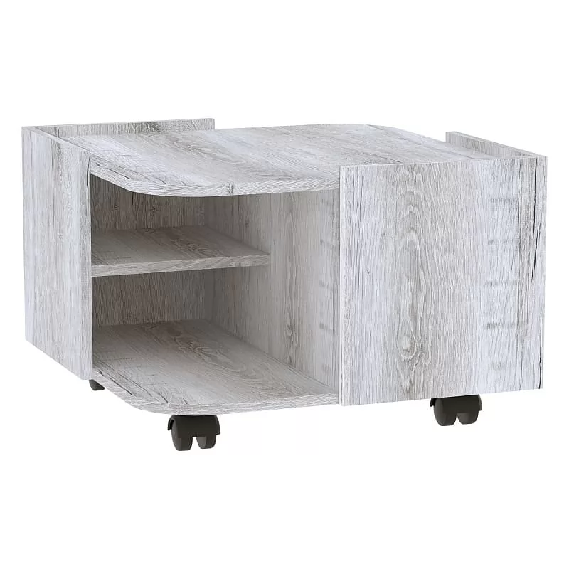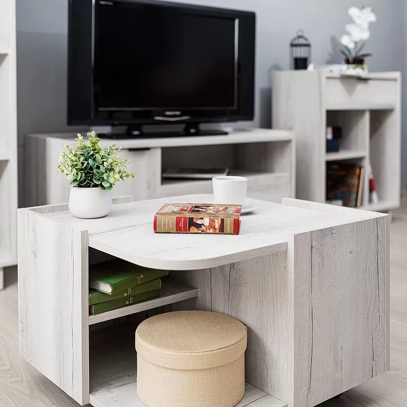 Журнальный столик в гостиной – предмет постоянного использования. Разложите на столешнице нужные вещи, а ниши используйте для книг и других небольших вещиц. Бортики столика предотвратят падение предметов. Колесные опоры добавляют столу мобильности в передвижении.