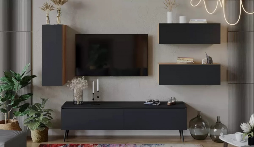 Модульная гостиная «Глосс» Яблоня Беллуно/Cтекло Графит матовый