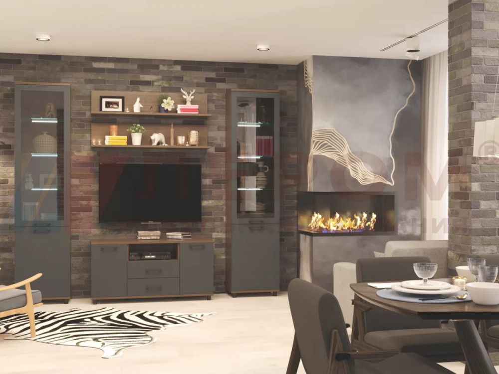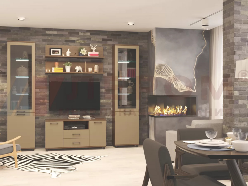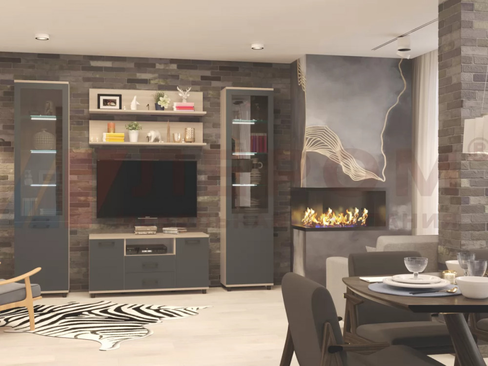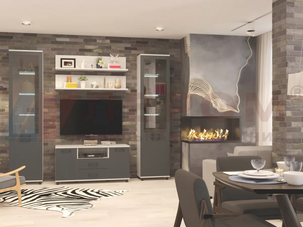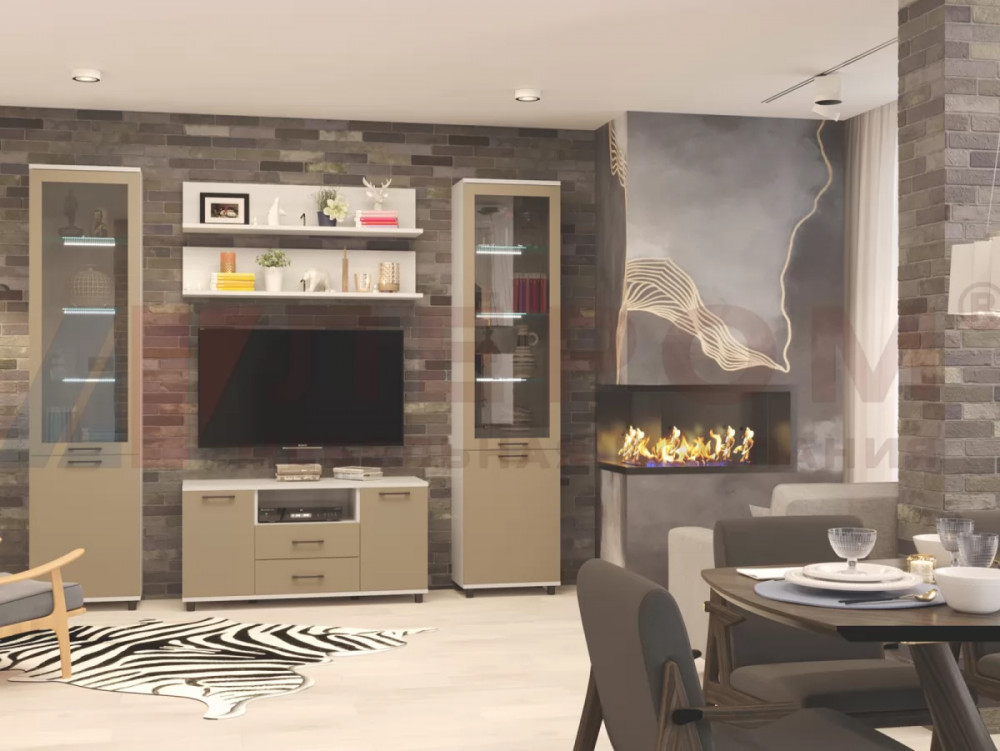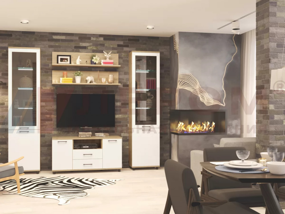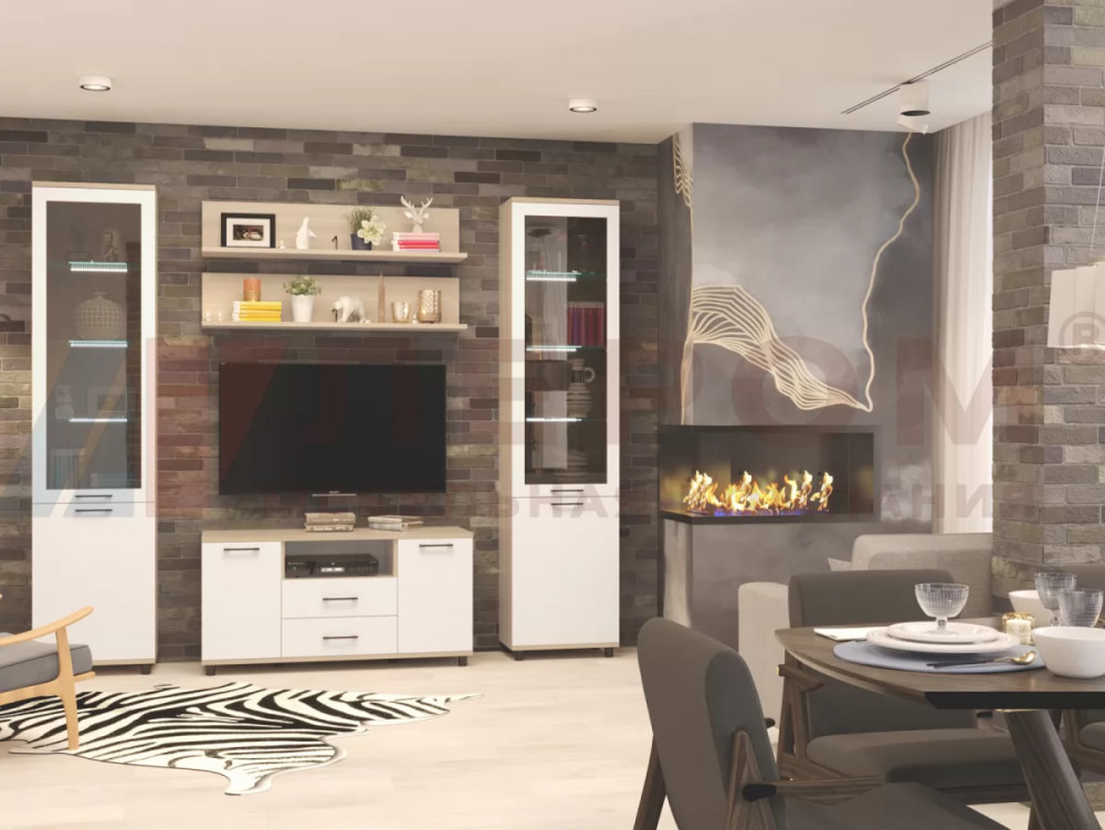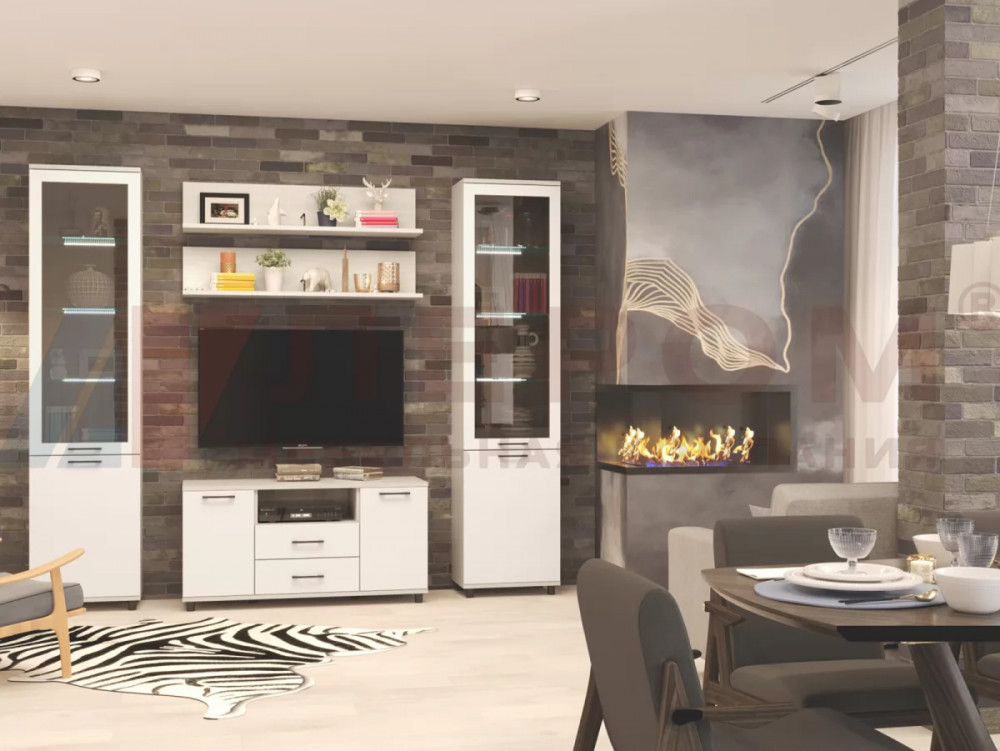 Гостиная Зефир К1 белое дерево/белый муар/белый