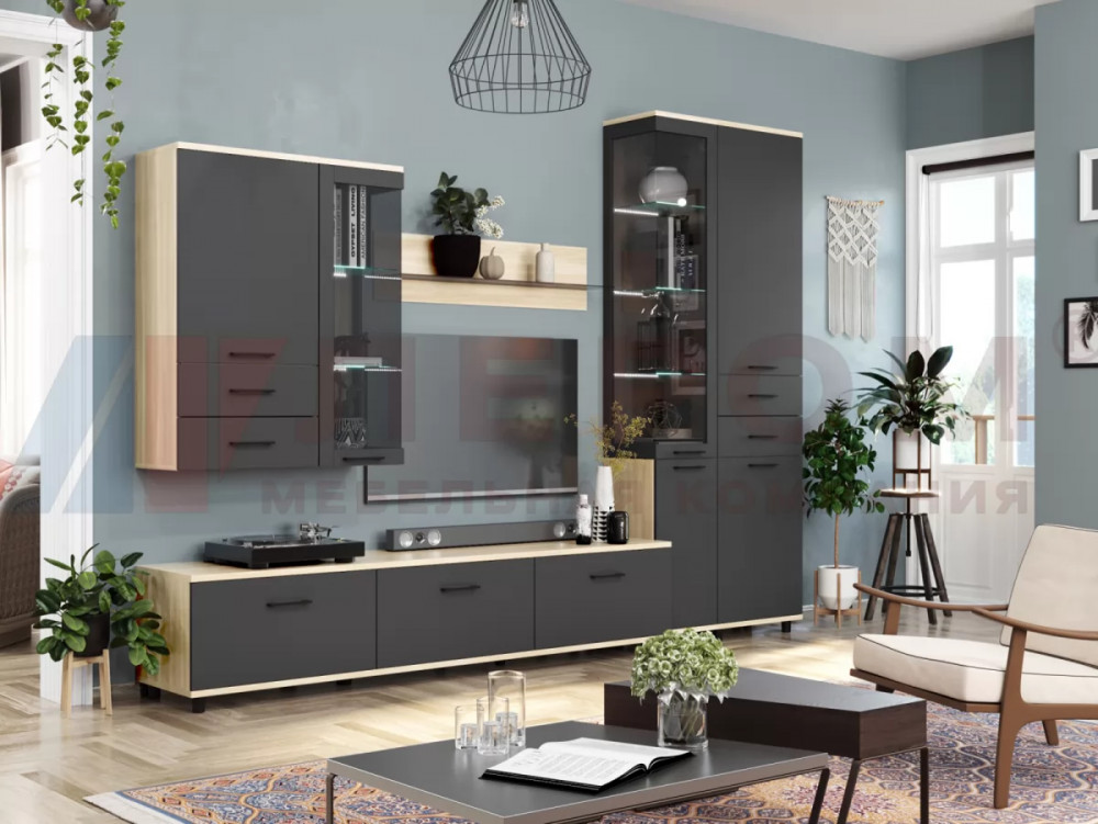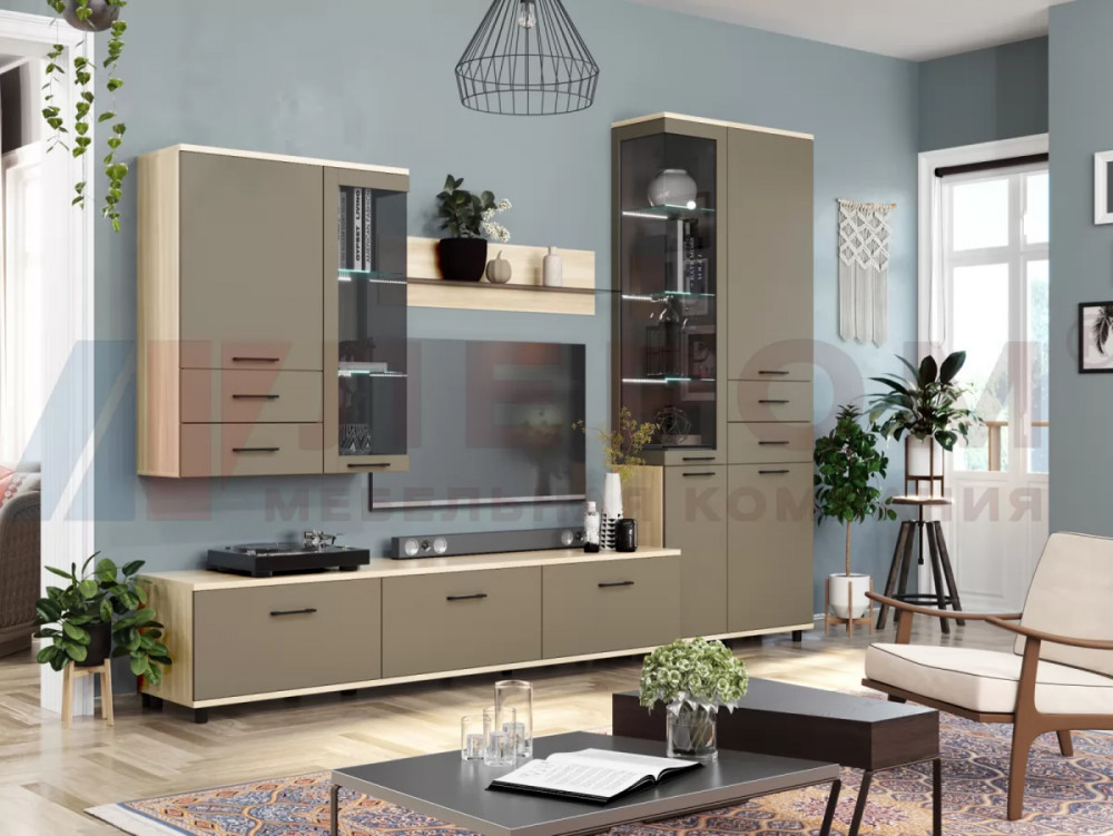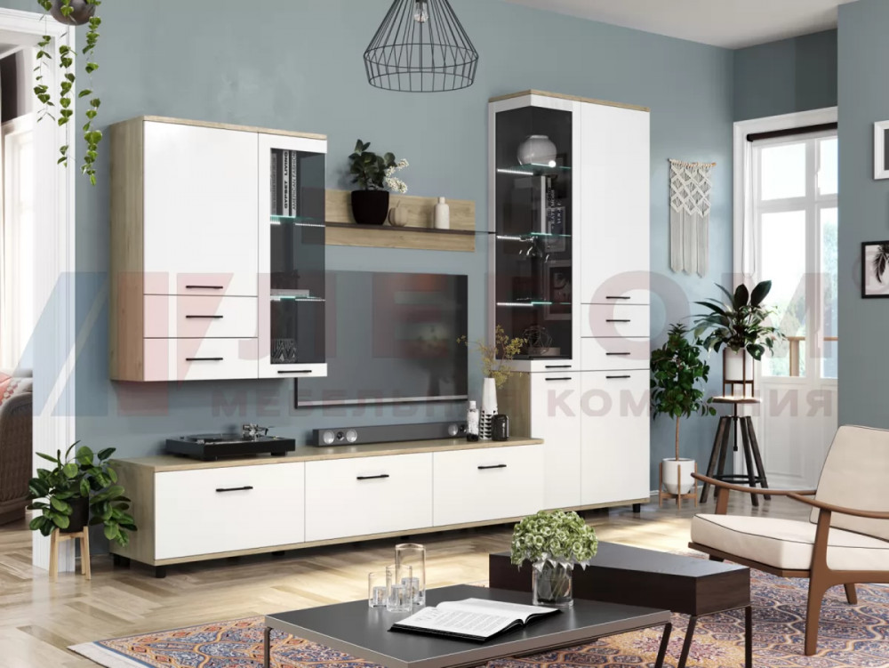 Гостиная Эго, набор №БГ-1, дуб крафт золотой/белый глянец Диал
