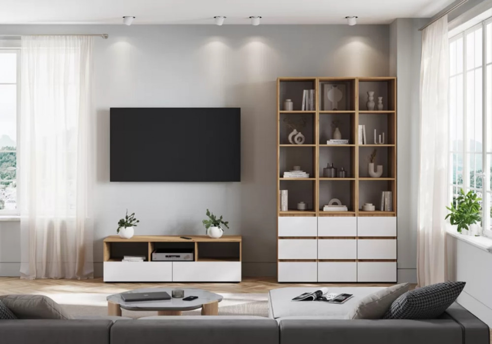 ХЕЛЕН ТБ02 Тумба ТВ (ш1402*г460*в442мм), Дуб Крафт Золотой/Белый