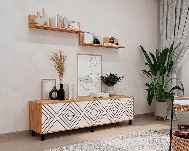 Гостиная Hygge, набор №Р-1, дуб вотан/белый с фп ромбы
