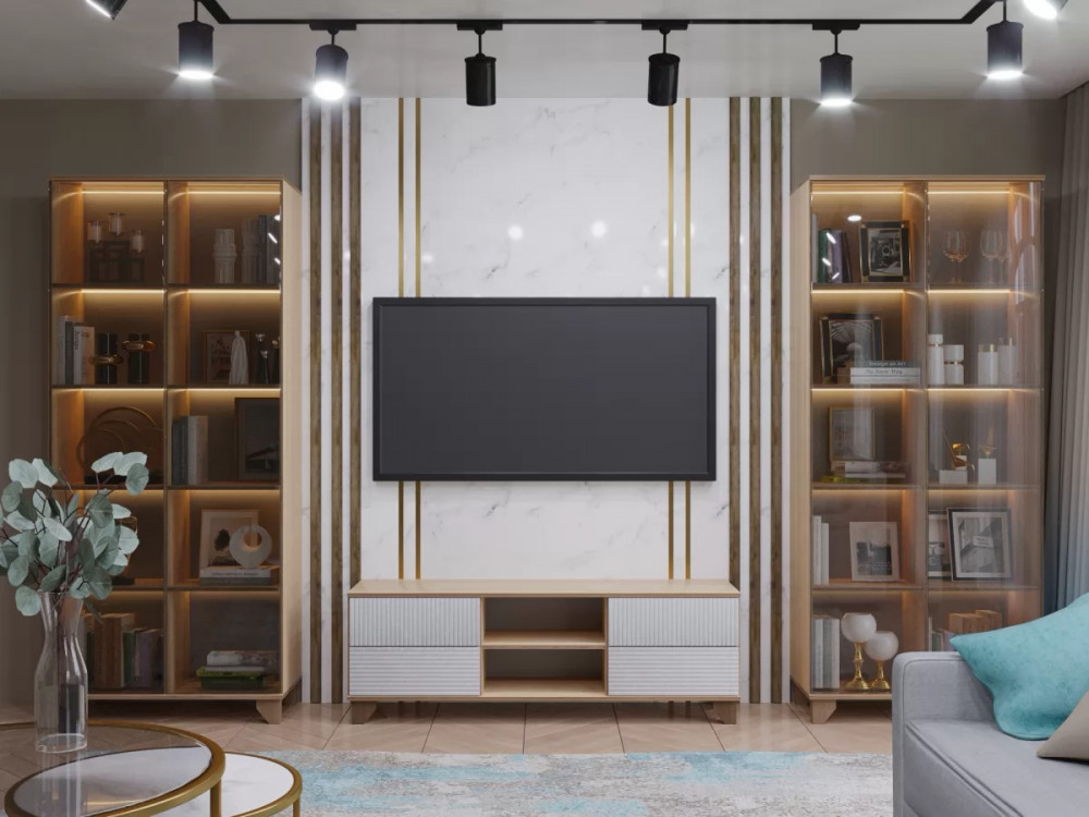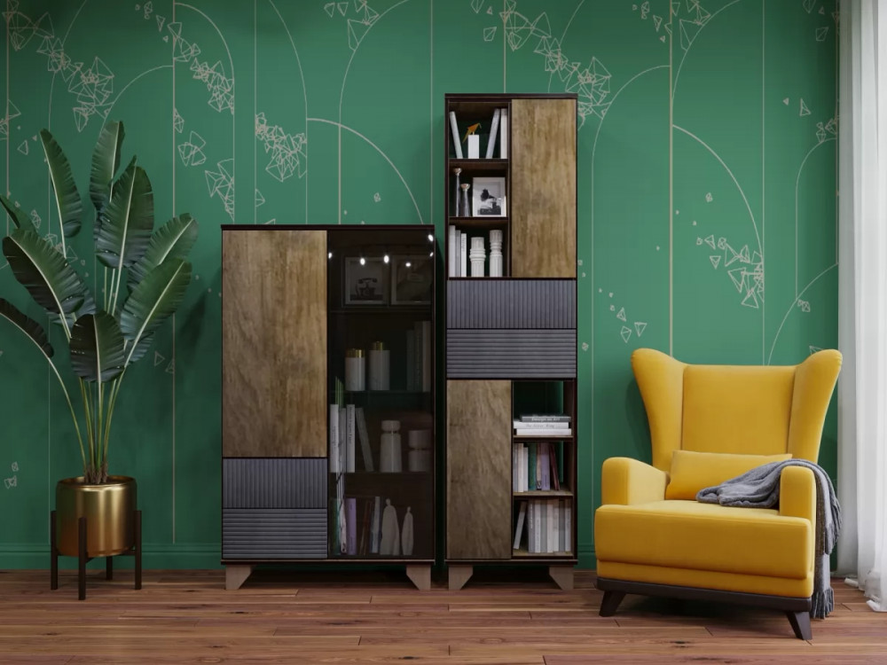 Благодаря выбору сочетания расцветки фасада и корпуса изделий возможно создание индивидуальной коллекции мебели для любого интерьера. Кроме того, применение правил композиции поможет создать визуальный баланс и взаимосвязь элементов гостиной.
