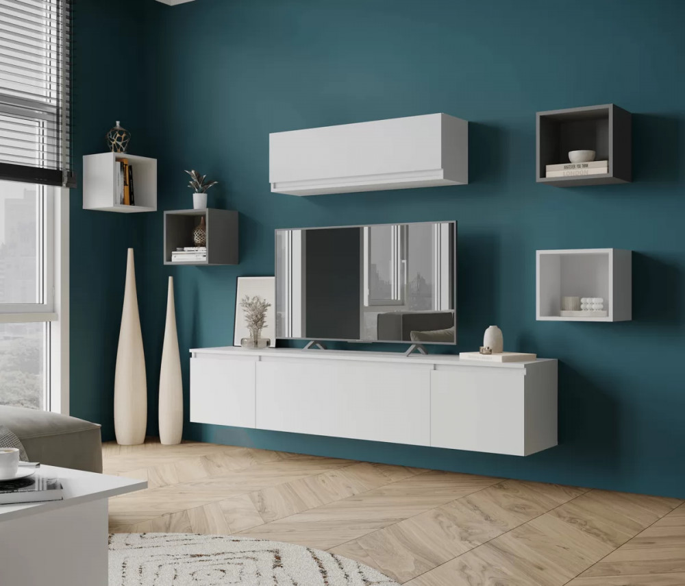 Отсутствие лицевой фурнитуры. Тумба МГТ-2 подвесная, при желании тумбу можно доукомплектовать опорами. Комплект опор из 5 шт продается отдельно. Тумба МГТ-1 можно дополнить кубом МГК-ТВ в цвете ЛДСП Графит серый (убрав полку из открытой ниши)