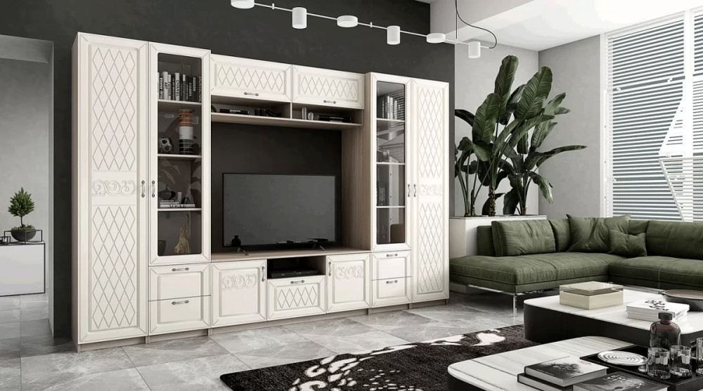 Гостиная №БДК-1 "Вега Скандинавия" Белый дуб каньон/Белый глянец