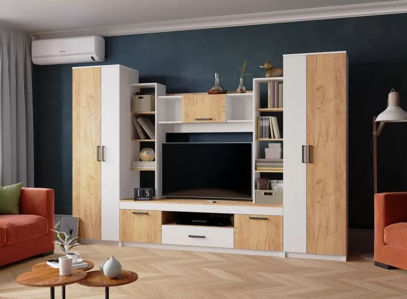 Гостиная СИДНЕЙ-2 (ш3000*г470*в2000мм), Белый/ЛДСП Дуб крафт золотой