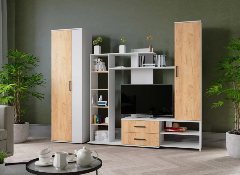 Гостиная СИДНЕЙ-2 (ш3000*г470*в2000мм), Белый/ЛДСП Дуб крафт золотой