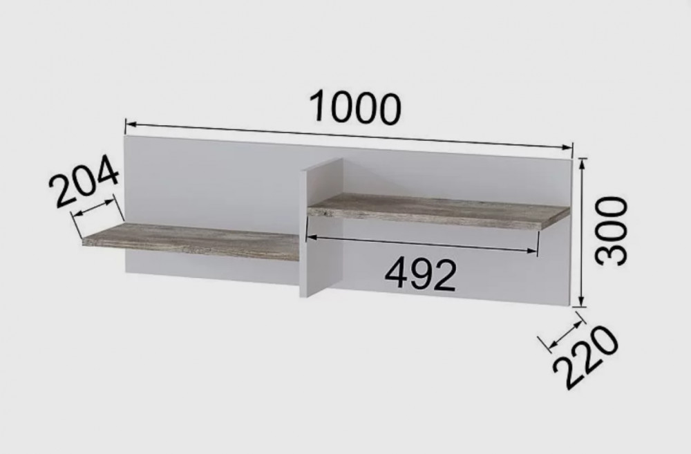 ЛИНЦ Полка навесная (ш1000*г220*в300мм), ЛДСП Белый/Дуб юкон