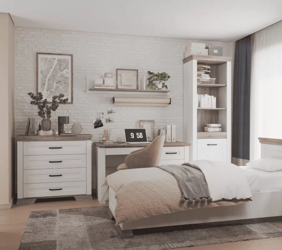 MARSELLE кровать LOZ90х200 (Ясень снежный/ Дуб сонома темный)