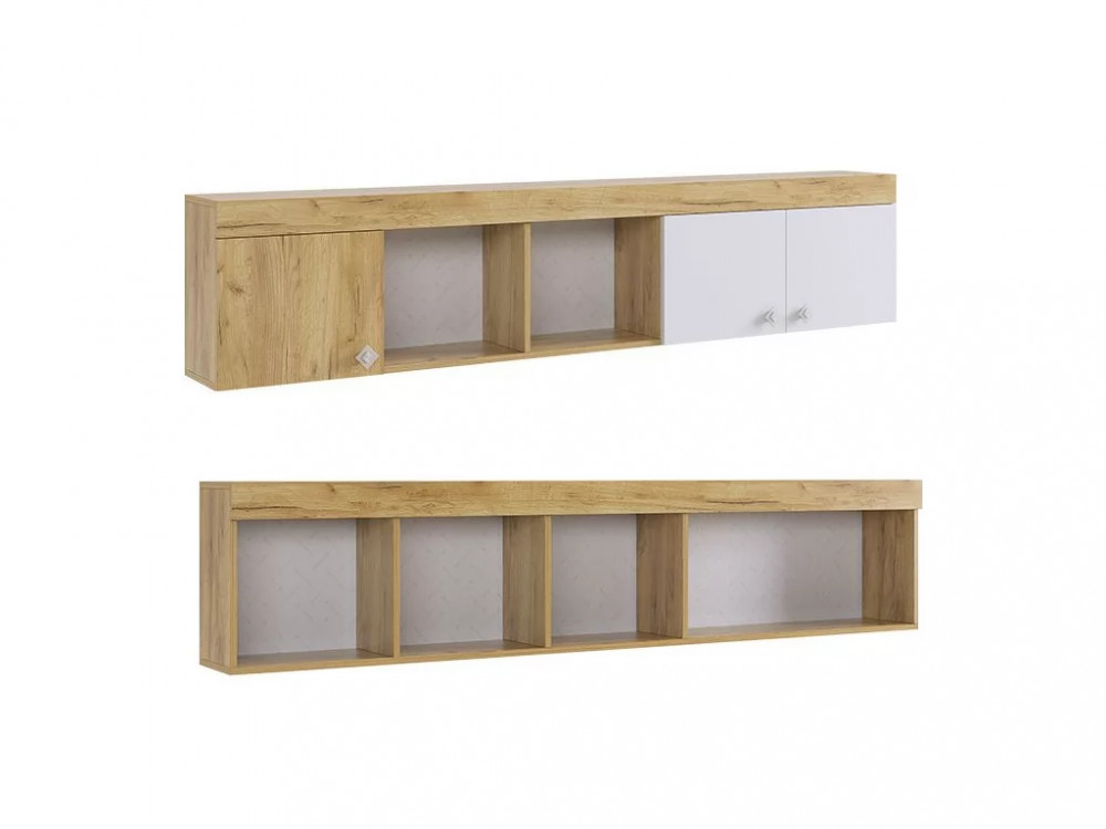 Шкаф комбинированный с ящиками 2-створчатый Форсаж дуб крафт золотой/белый