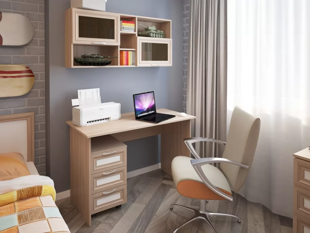 4. Полка украсит и дополнит любое рабочее место, самую гармоничную композицию она составляет со Столом прямым М13, т.к. совпадает с ним по ширине (1200 мм).