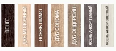 | Цвет | Венге темный, Ясень шимо тёмный, Дуб молочный, Орех, Дуб сонома, Белый |