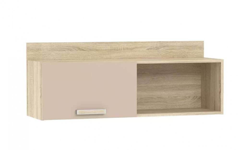 Полка НМ 011.38 М1 органично дополнит рабочее место в детской. Закрытая секция модуля подойдет для хранения книг. Газлифты максимально высоко поднимают фасад вверх, обеспечивая большую площадь обзора содержимого. Предметы декора будут хорошо смотреться в открытой секции полки.