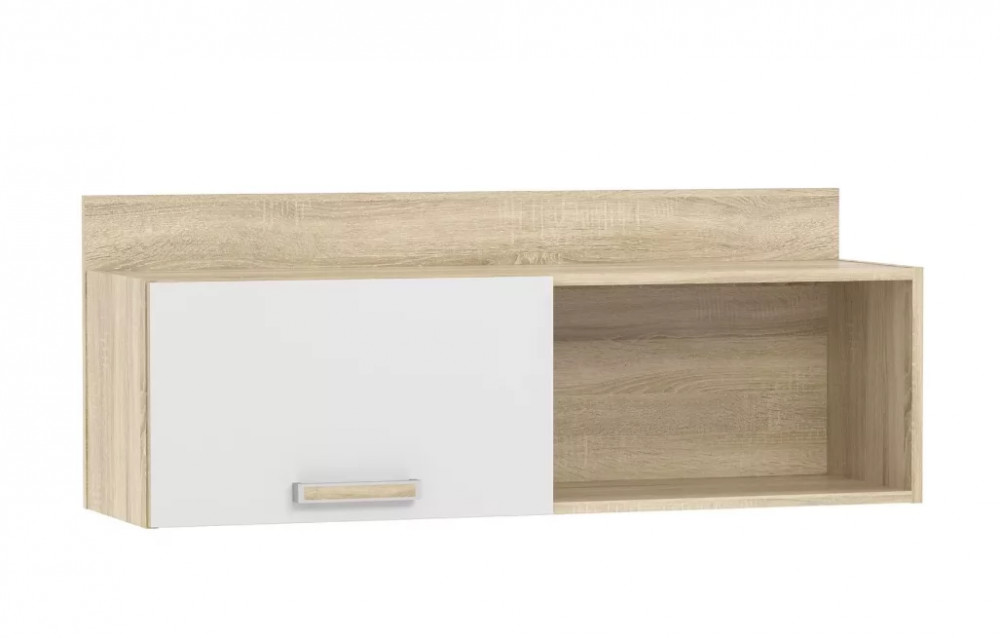 Полка НМ 011.38 М1 органично дополнит рабочее место в детской. Закрытая секция модуля подойдет для хранения книг. Газлифты максимально высоко поднимают фасад вверх, обеспечивая большую площадь обзора содержимого. Предметы декора будут хорошо смотреться в открытой секции полки.
