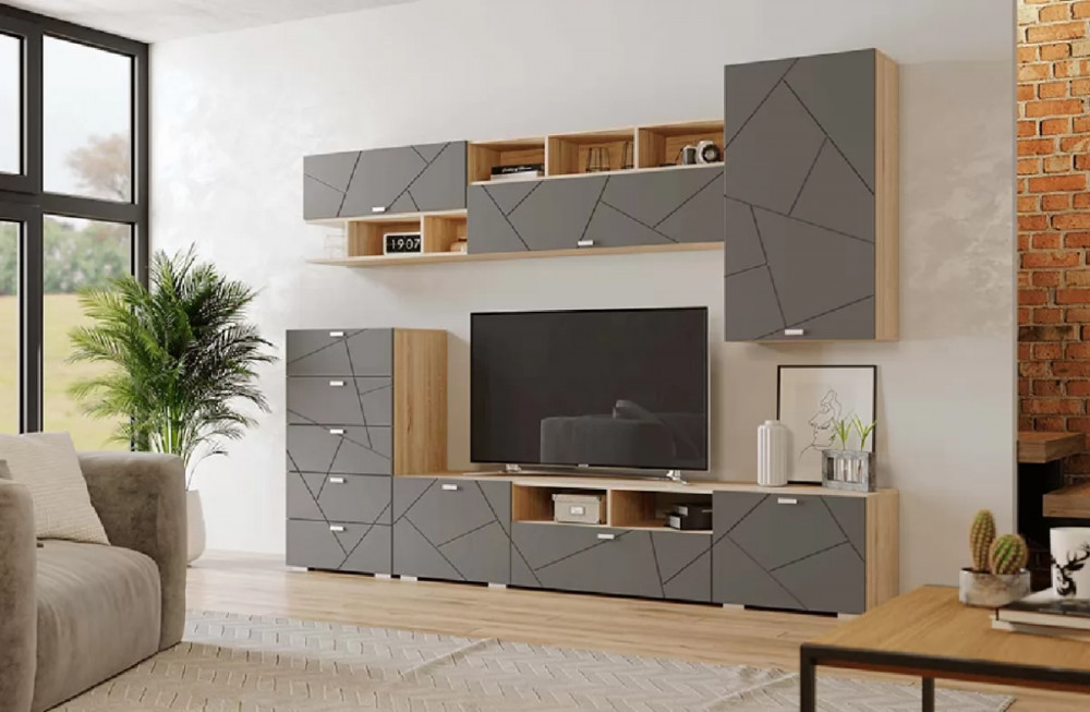 Гостиная Скайлайн, набор ДГ- 8, дуб сонома светлый/графит