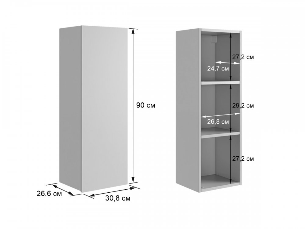 Размеры: Глубина 25 см x Ширина 30 см x Высота 90 см