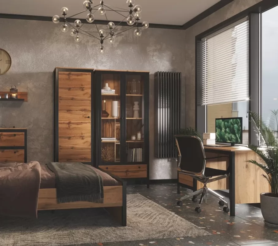 LOFT шкаф REG2W1S (Дуб вотан/Черный)