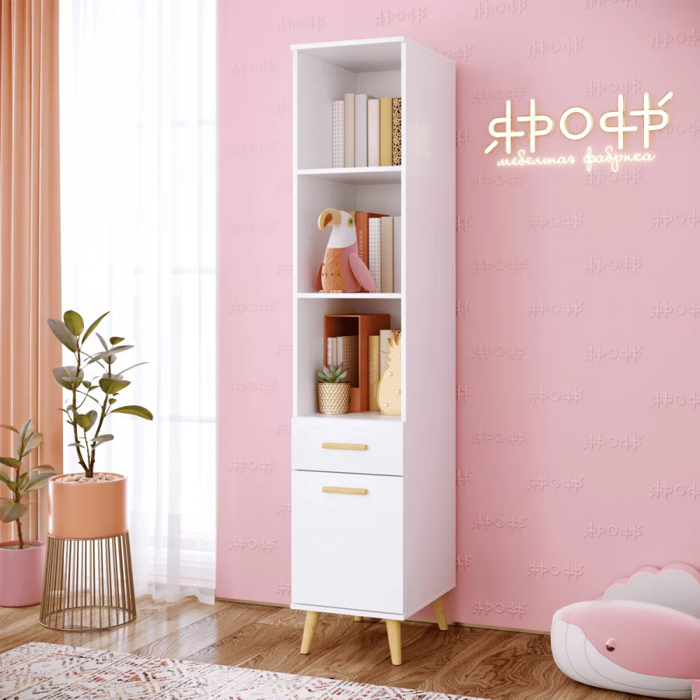 Пенал представляет собой одну открытую секцию, включающую в себя три полки и одну закрытую. Прекрасно подойдет для хранения игрушек, сувениров, книг и одежды. Деревянные ножки из березы с лаковым покрытием.
