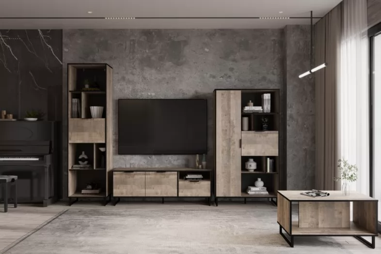 Коллекция "Фолк" - современная и стильная, смелая и яркая мебель в Индустриальном стиле или стиле Лофт. Основные материалы дизайна – металл, дерево, но не глянцевые, словно сошедшие с конвейера, а несущие на себе печать времени. Главные детали в мебели – это природные несовершенства материалов. Стиль этой коллекции брутальный и монументальный создает современный интерьер, приятный глазу. Отличительной чертой и несомненным украшением является черная окантовка, создающая эффектную, выразительную линию, очерчивающую контур фасадов. Стилистически подобранные аксессуары - черные металлические ручки и цельнометаллические опоры дополняют и подчеркивают современный дизайн мебели.