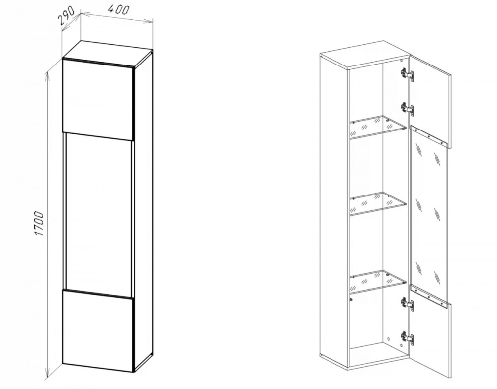 Размеры (Ш\В\Г): 400 х 1700 х 290 мм