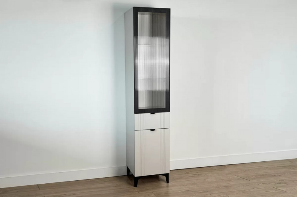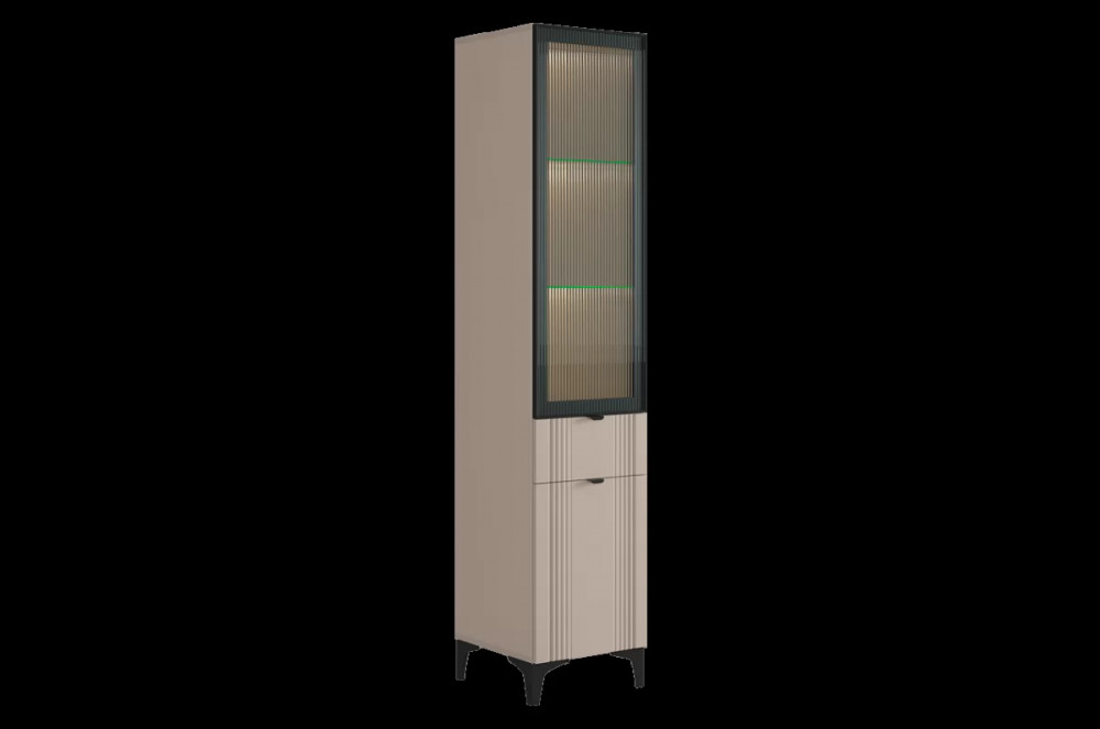 Шкаф однодверный (со стеклом) Рич кашемир/фрапучино матовый/черный