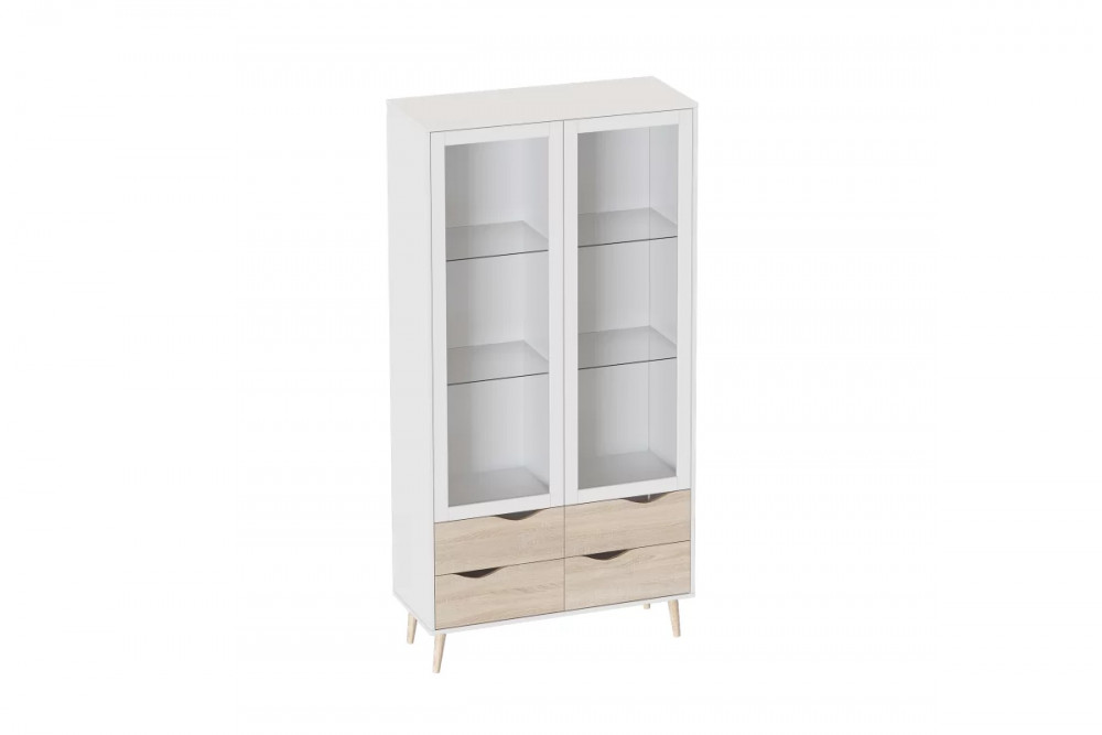 Шкаф-витрина "Соната" будет одинаково гармонично смотреться как в составе мебельной композиции, так и установленный отдельно. Распашные дверцы со стеклами и белоснежнымы фасадами из ЛДСП защитит коллекционный фарфор, декоративную посуду или книги от пыли, обеспечивая при этом прекрасный обзор всего содержимого полок. В нижней секции, оборудованной четырмя выдвижными ящиками с фасадами, декорированными прорезными ручками, можно хранить предметы, имеющие более утилитарное назначение.