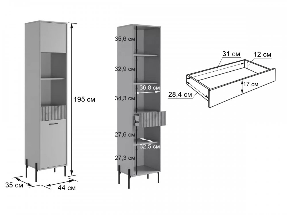 Размеры: Глубина 35 см x Ширина 44 см x Высота 195 см