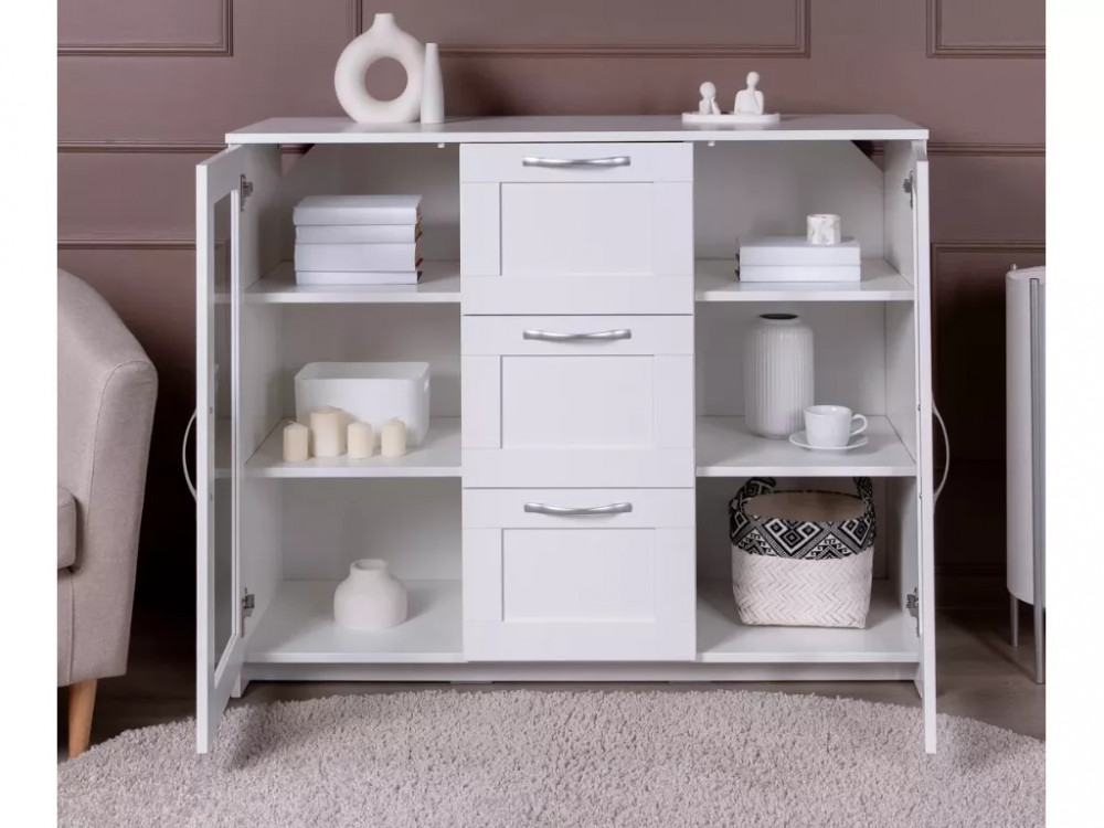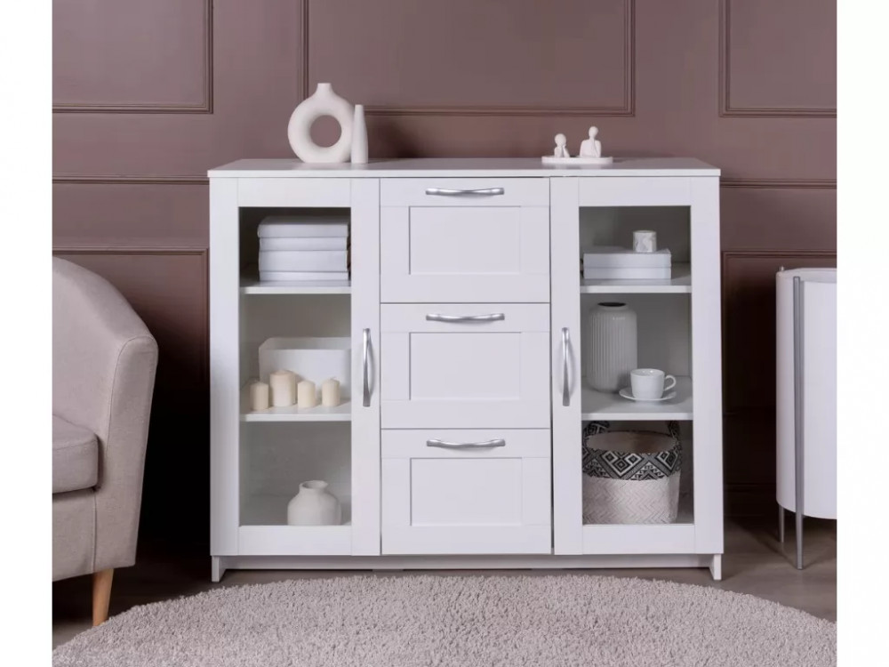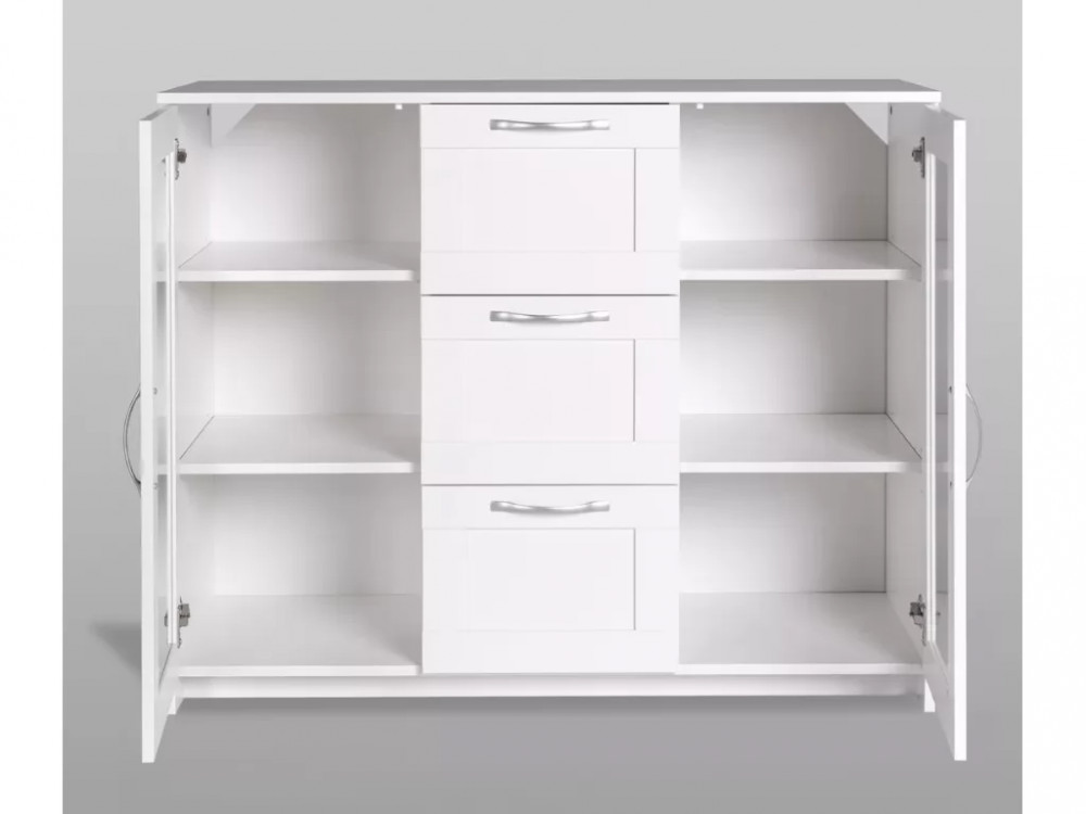 Тумба 2 двери со стеклом и 3 ящика Сириус 117х95 белая
