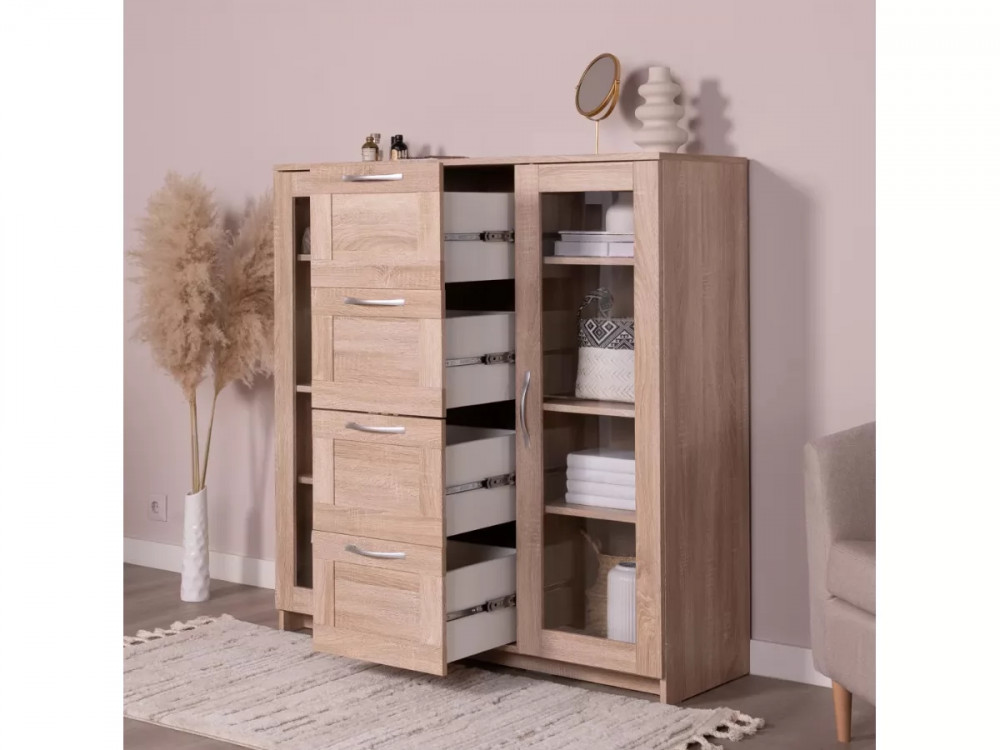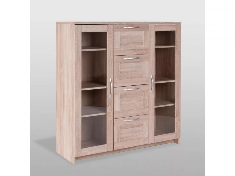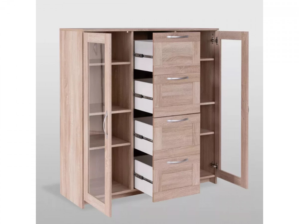 Тумба 2 двери со стеклом и 4 ящика Сириус 117х123 Дуб Сонома