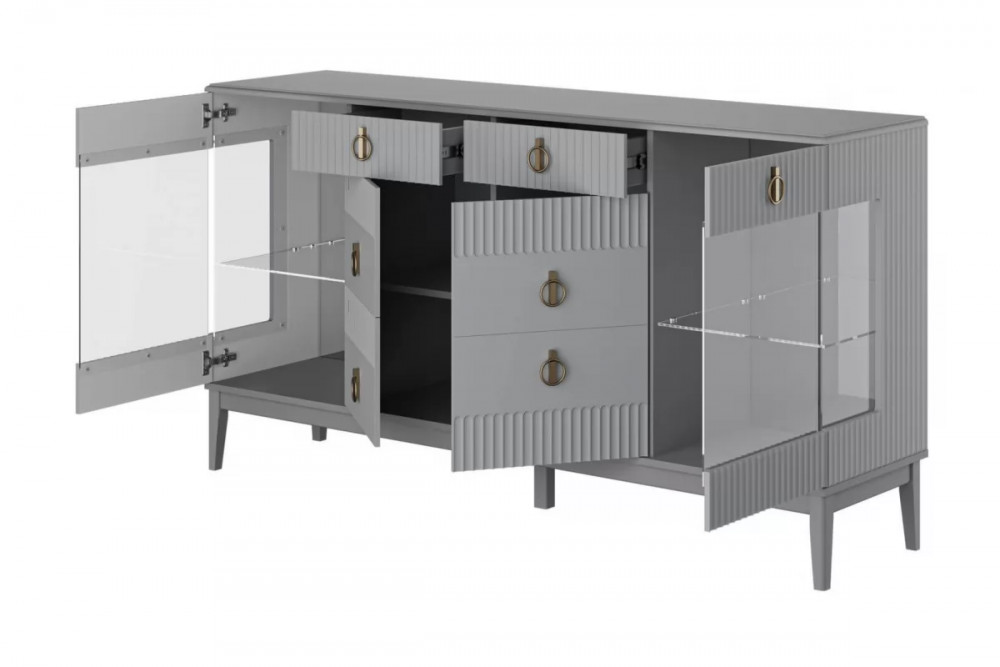 Тумба-бар 4 двери-2 ящика Фарго Серый шифер/Лак Антрацит